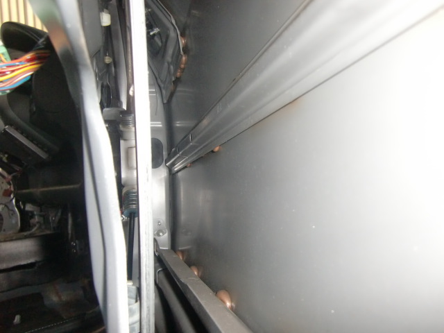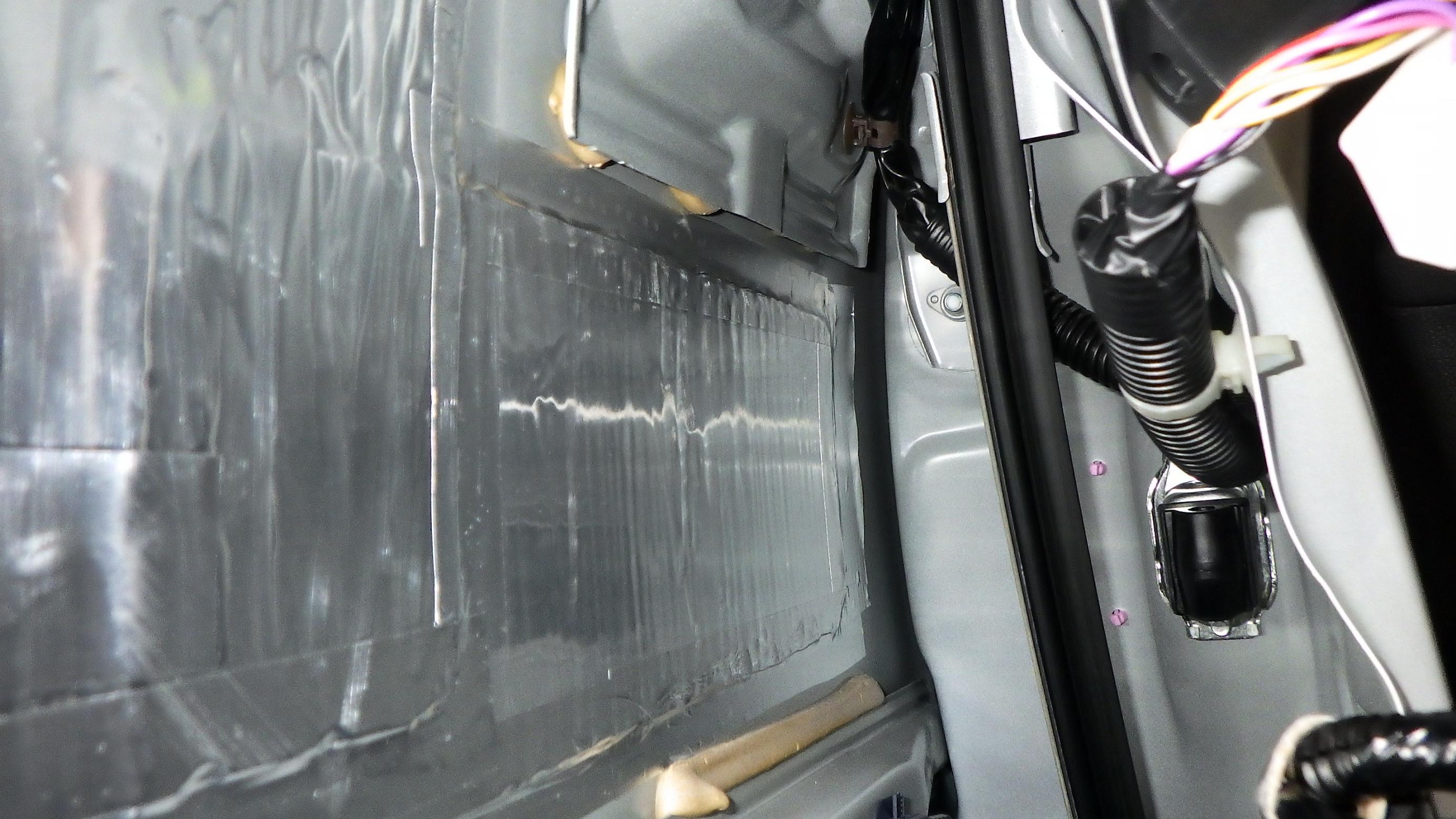 ドアの鉄板部 インナーパネルやアウターパネルに制振シートを貼り、鉄板の振動を抑えます。アウターパネルに制振する事によって、防音の効果も期待できます。